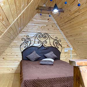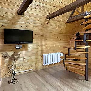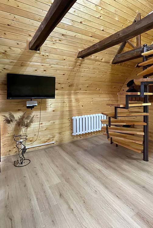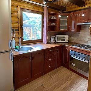 Two-storey cottage for 4-8 persons In the cottage there is a kitchenette (microwave oven, fridge, electric kettle, electric stove, kitchen utensils, sink);