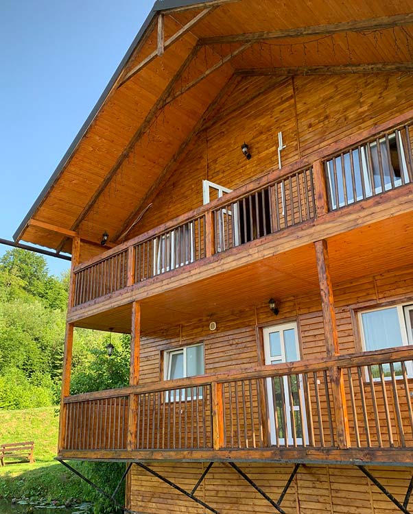 In Ispas village, 4 km from the road Chernivtsi–Vyzhnytsya–Verkhovyna, 3 km from the village center, 18 km to ski lifts of the Pereval Nimchych (Nimchych pass) complex.
