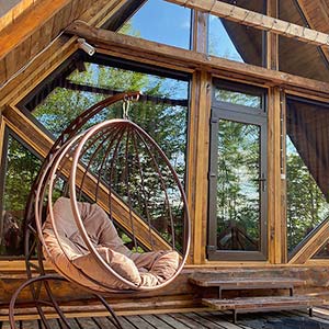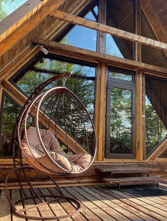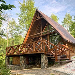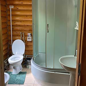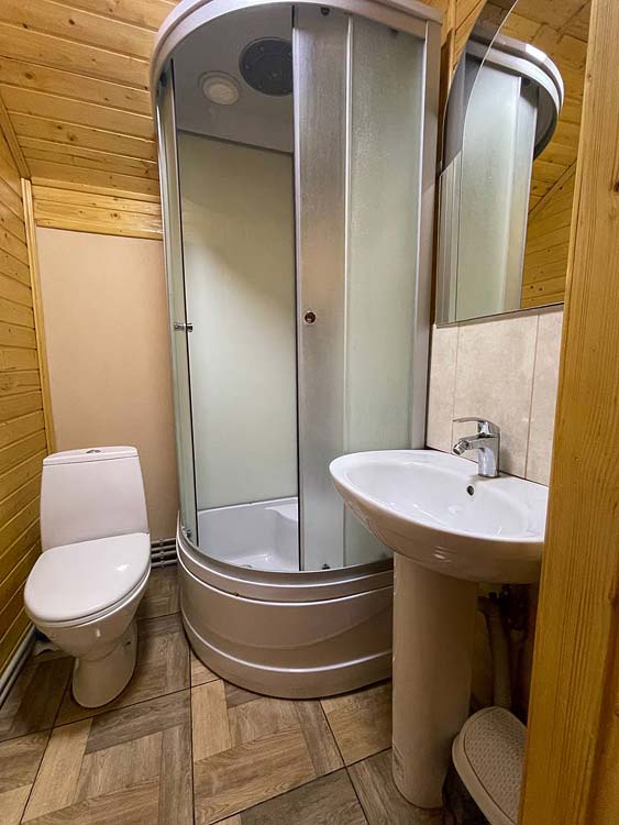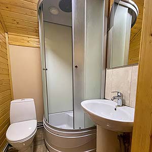 In the forest area by the bank of the pond there are 3 two-storey cottages, two-tier cottage and an one-storey cottage, a cafe, a sauna with a swimming pool, gazebos and barbecue facilities.