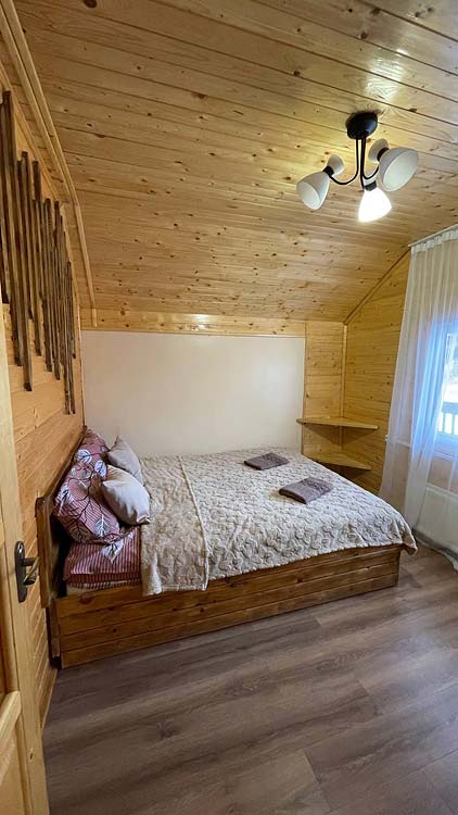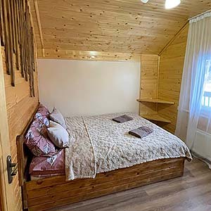 On the first floor there are 3 double rooms (in each room there is a double bed; in one room there is an extra bed — a sofa bed);