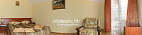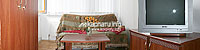 Economy class room (3 rooms) has a double bed, a wardrobe, a TV set and a shared bathroom (WC, shower).One room has extra shower, another room has a balcony, the third room has extra beds — sofa bed.