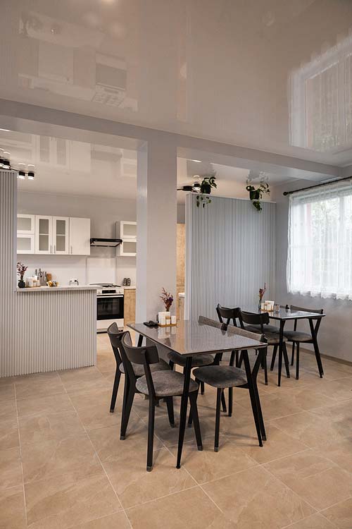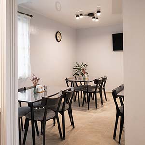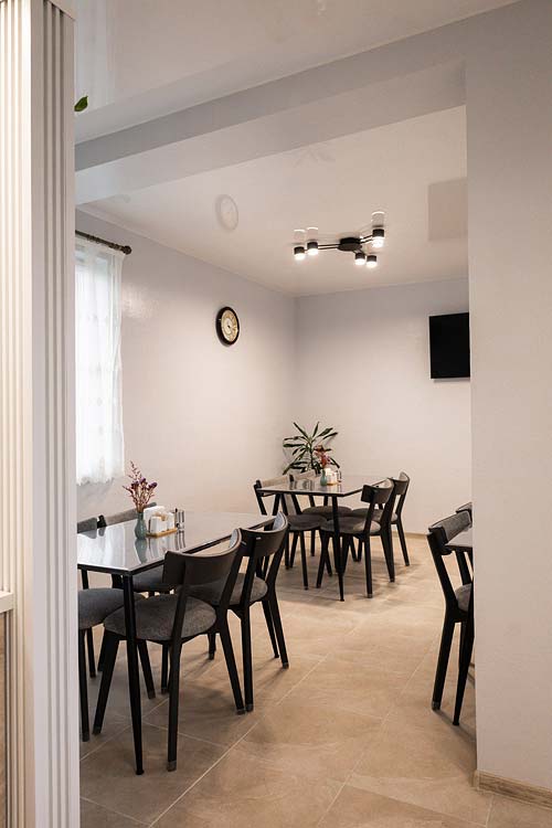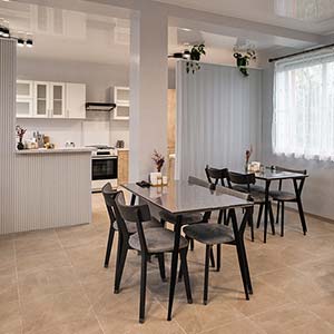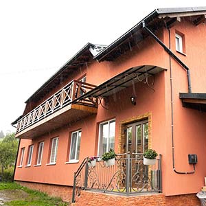 На першому поверсі — кухня, обідній зал, 2 двомісні номери.