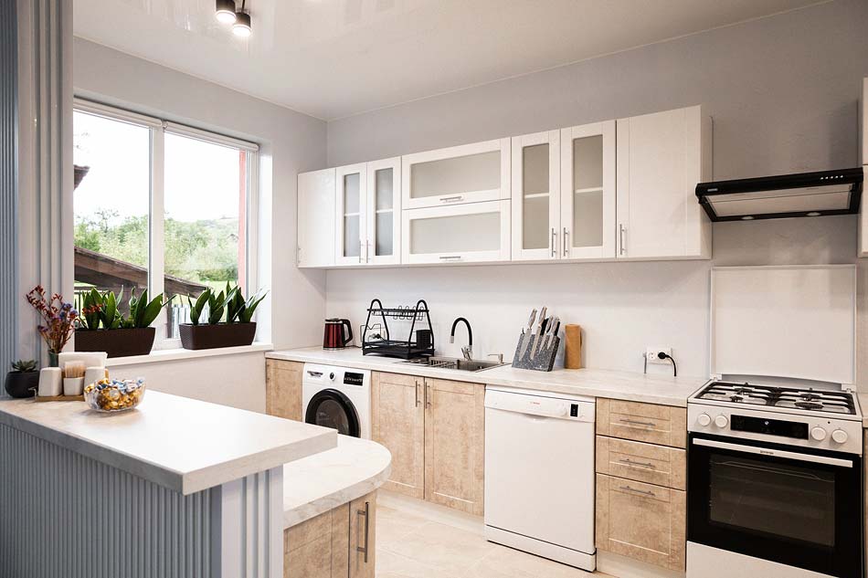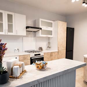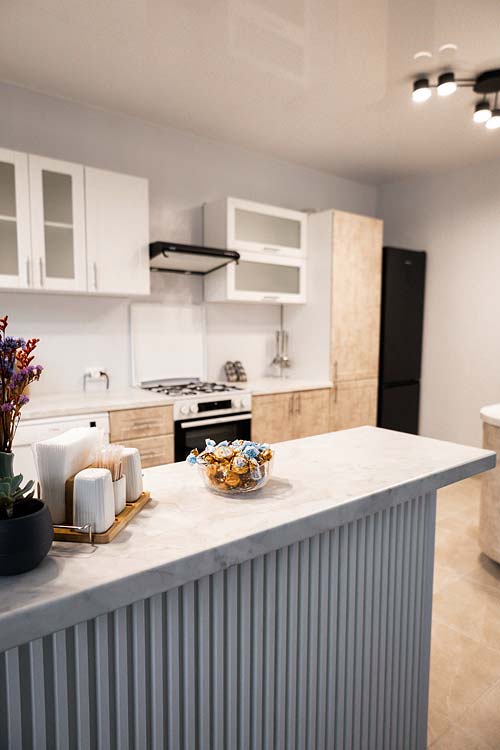 Можна самостійно готувати їжу на кухні (газова плита, мікрохвильова піч, холодильник, електрочайник, посуд, мийка, посудомийна машина).